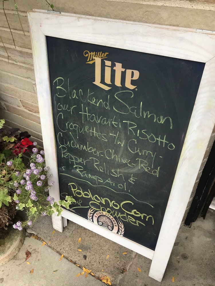 Black bean polenta, pesto, fontina cheese, avocado, red radish, arugula and salsa verde served on a toasted ciabatta bun