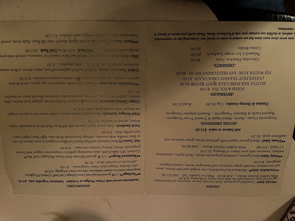 Lake perch fillets lightly dusted with dill flour, on brioche with our homemade tartar sauce, topped with lettuce.
